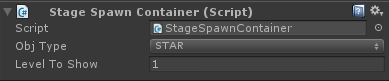 You can also add pickups to your game like "Stars". All you need to do is drop in a gameobject with the script "StageSpawnContainer.cs" and select the "Star" from the Obj Type menu and when the Stage is spawned a Star will be put in the positoin of the gameobject with the StageSpawnContainer script. You can also spawn moving characters this way. Just change the Obj Type to "Character_1" to see an example of this or view some of the other stages provided in the package.